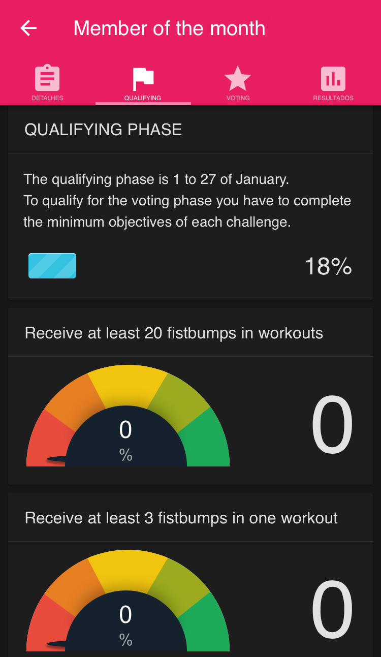 Very well-developed and structured activities that keep clients busy and more engaged in classes, due to its evolution records, as well as the "prizes" they can win by surpassing marks!